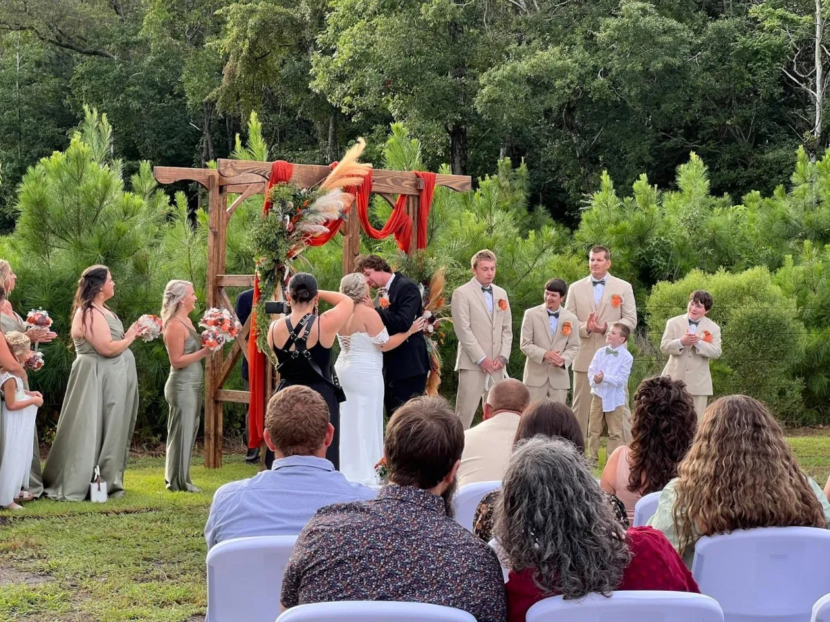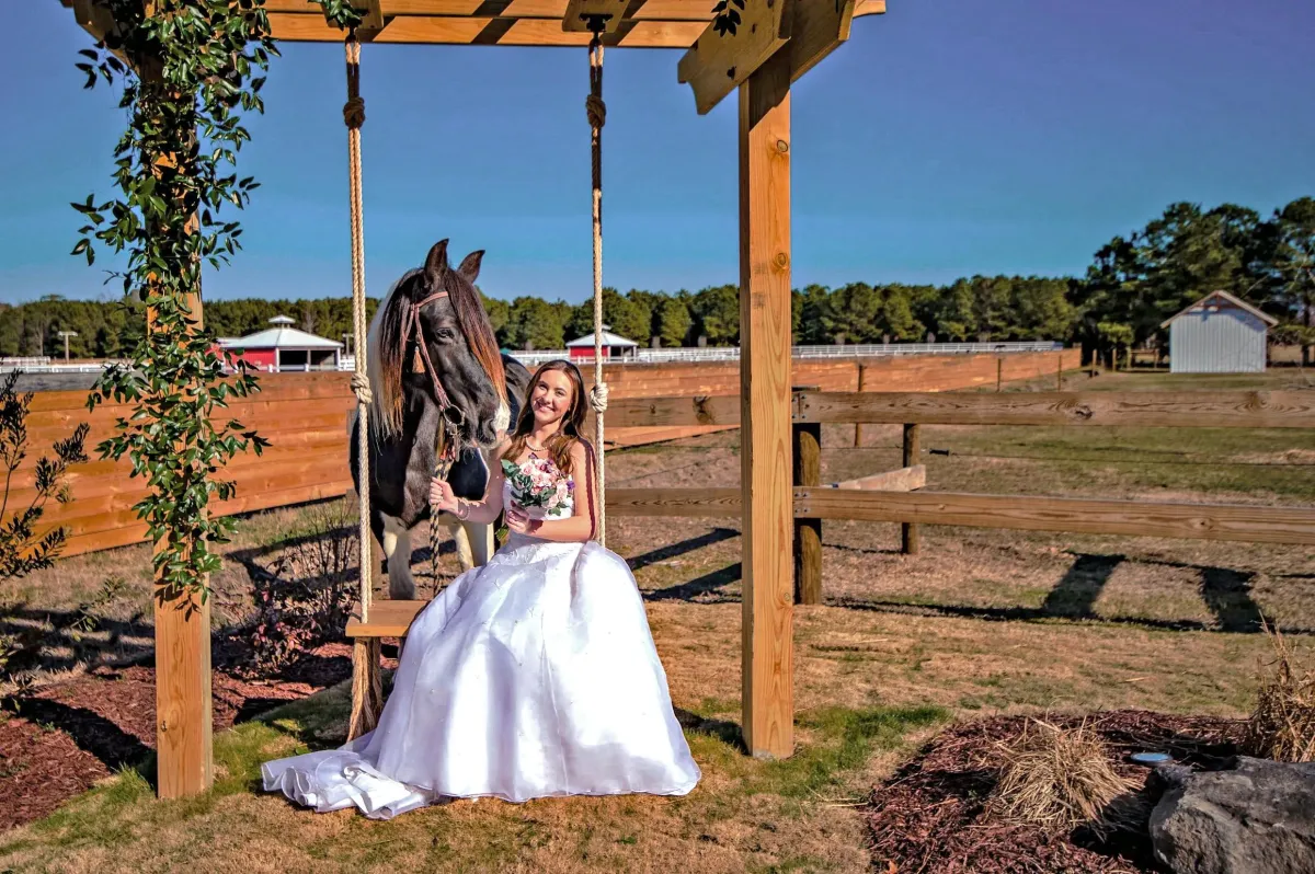 Night Wind Farm’s grounds offer a breathtaking backdrop for your wedding day. Spanning lush, open pastures and dotted with trees, the property provides ample space for outdoor ceremonies, and scenic photos. Wander through the farm, where you might spot our beloved horses grazing peacefully, adding a touch of charm and authenticity to the surroundings. The expansive landscape invites you and your guests to enjoy a relaxed, nature-filled experience that feels both secluded and serene, just minutes from the Outer Banks.